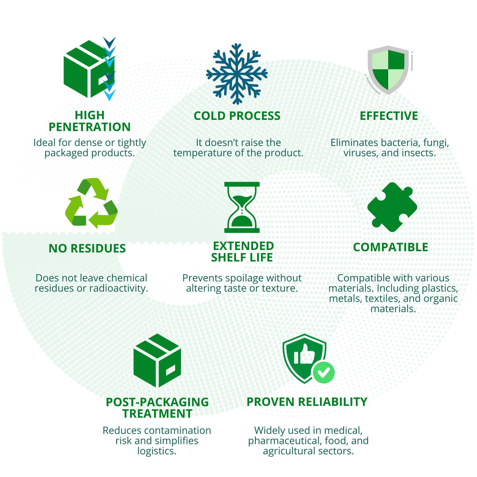 Gamma rays irradiation utilizes energy from the Cobalt 60 Isotope to produce high penetration photon radiation. This technology can reach the deepest parts of a product, making it ideal for medium to high density materials such as Pharmaceutical, Pharmaceutical Packaging, Medical, Food (Non Frozen), Food (Frozen), Food (Packaging), Cosmetic and Others. The process is effective without altering the properties or quality of the product.